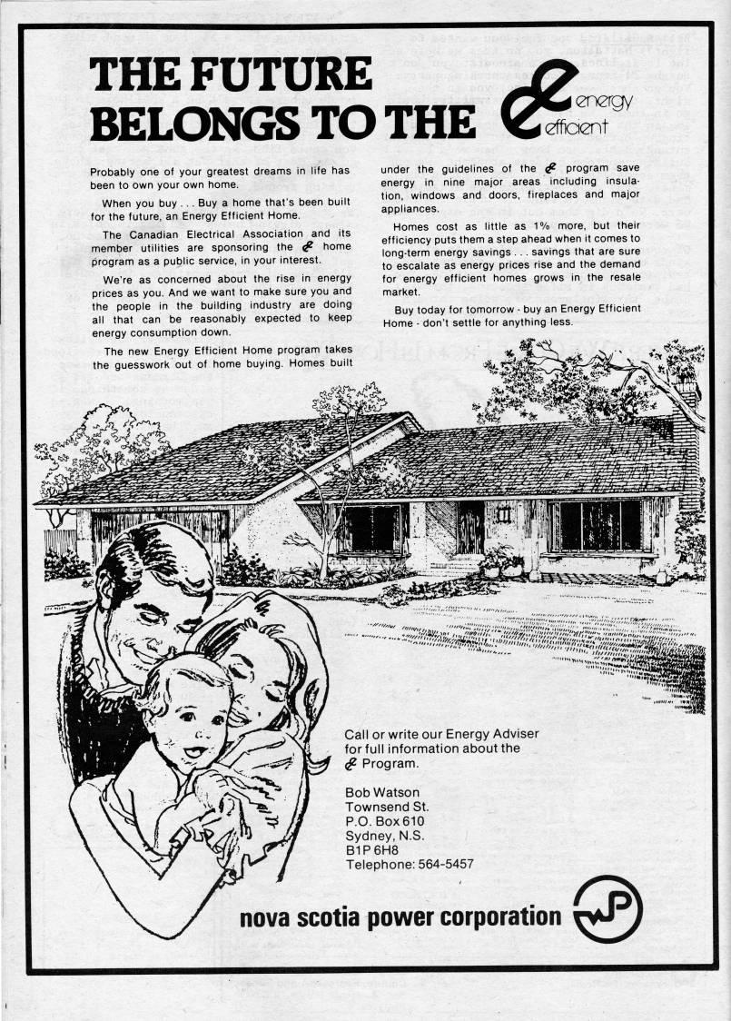 Published by Ronald Caplan on 1983/6/1 (353 reads)THE FUTURE BELONGS TO THE energy effioent Probably one of your greatest (jreams in life has been to own your own home. When you buy . .. Buy a home that's been built for the future, an Energy Efficient Home. The Canadian Electrical Association ancJ its member utilities are sponsoring the ' home program as a public service, in your interest. We're as concerned about the rise in energy prices as you. And we want to make sure you and the people in the building industry are doing all that can be reasonably expected to keep energy consumption down. The new Energy Efficient Home program takes the guesswork out of home buying. Homes built under the guidelines of the ' program save energy in nine major areas including insula? tion, windows and doors, fireplaces and major appliances. Homes cost as little as 1% more, but their efficiency puts them a step ahead when it comes to long-term energy savings . . . savings that are sure to escalate as energy prices rise and the demand for energy efficient homes grows in the resale market. Buy today for tomorrow - buy an Energy Efficient Home - don't settle for anything less.