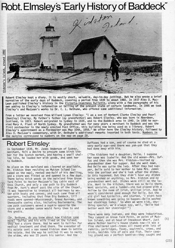 Page 25 - Robt. Elmsley's "Early History of Baddeck"