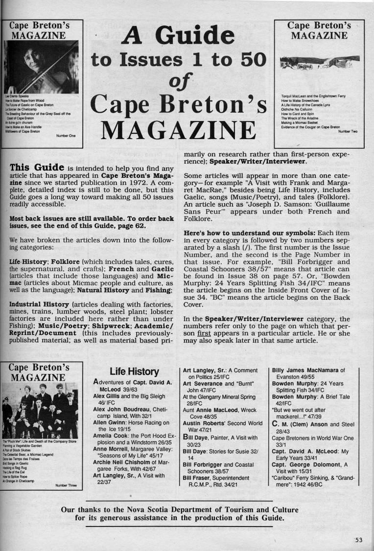 Page 53 - A Guide to Issues 1 to 50 of Cape Breton's Magazine