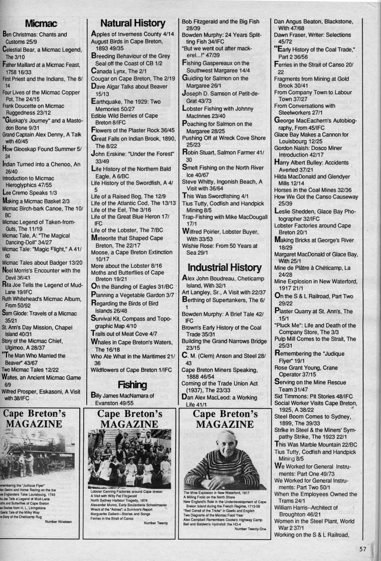Page 57 - A Guide to Issues 1 to 50 of Cape Breton's Magazine