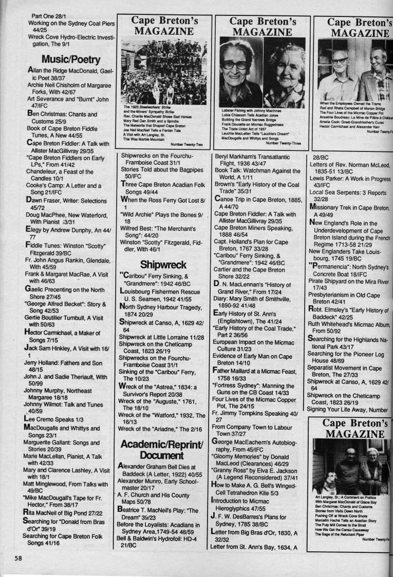 Page 58 - A Guide to Issues 1 to 50 of Cape Breton's Magazine