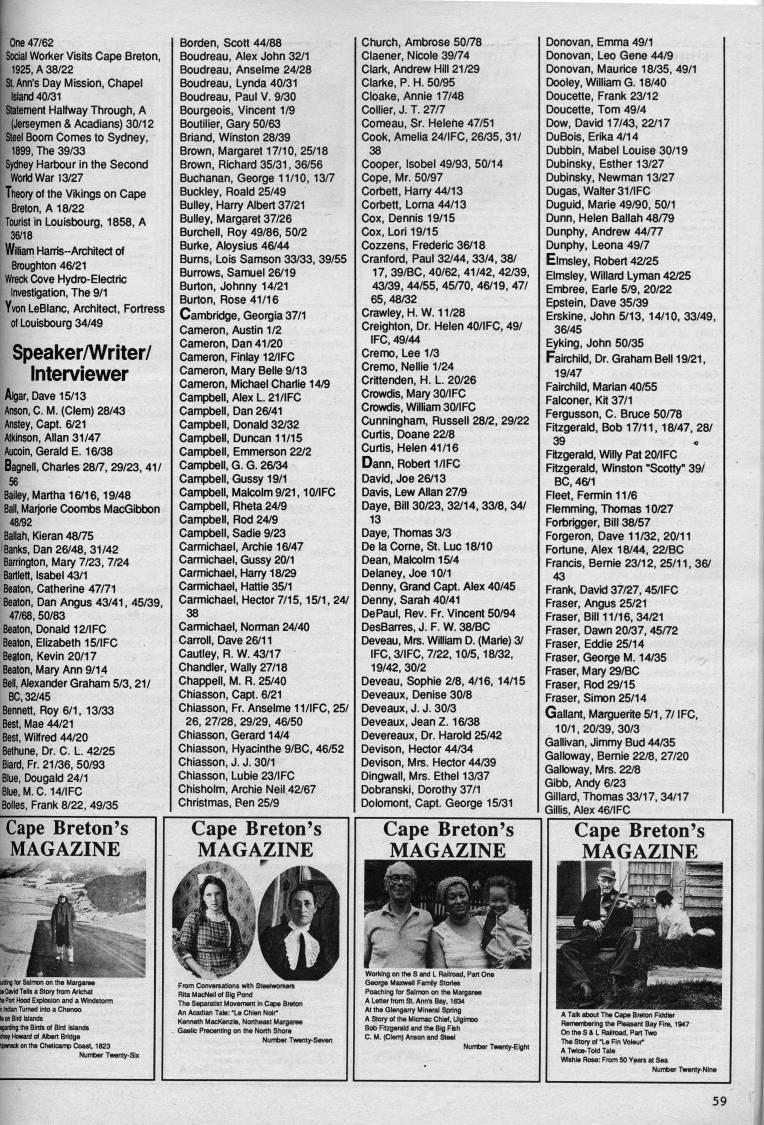 Page 59 - A Guide to Issues 1 to 50 of Cape Breton's Magazine
