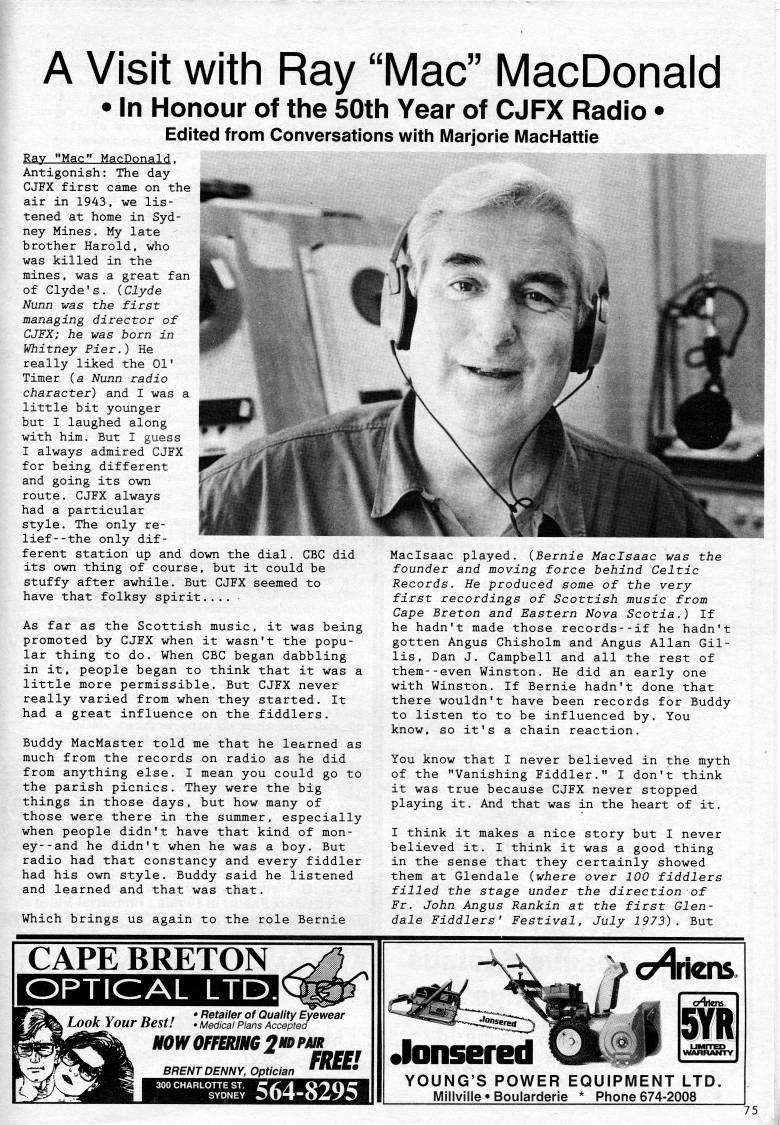 Page 75 - A Visit with Ray "Mac" MacDonald: In Honour of the 50th Year of CJFX Radio