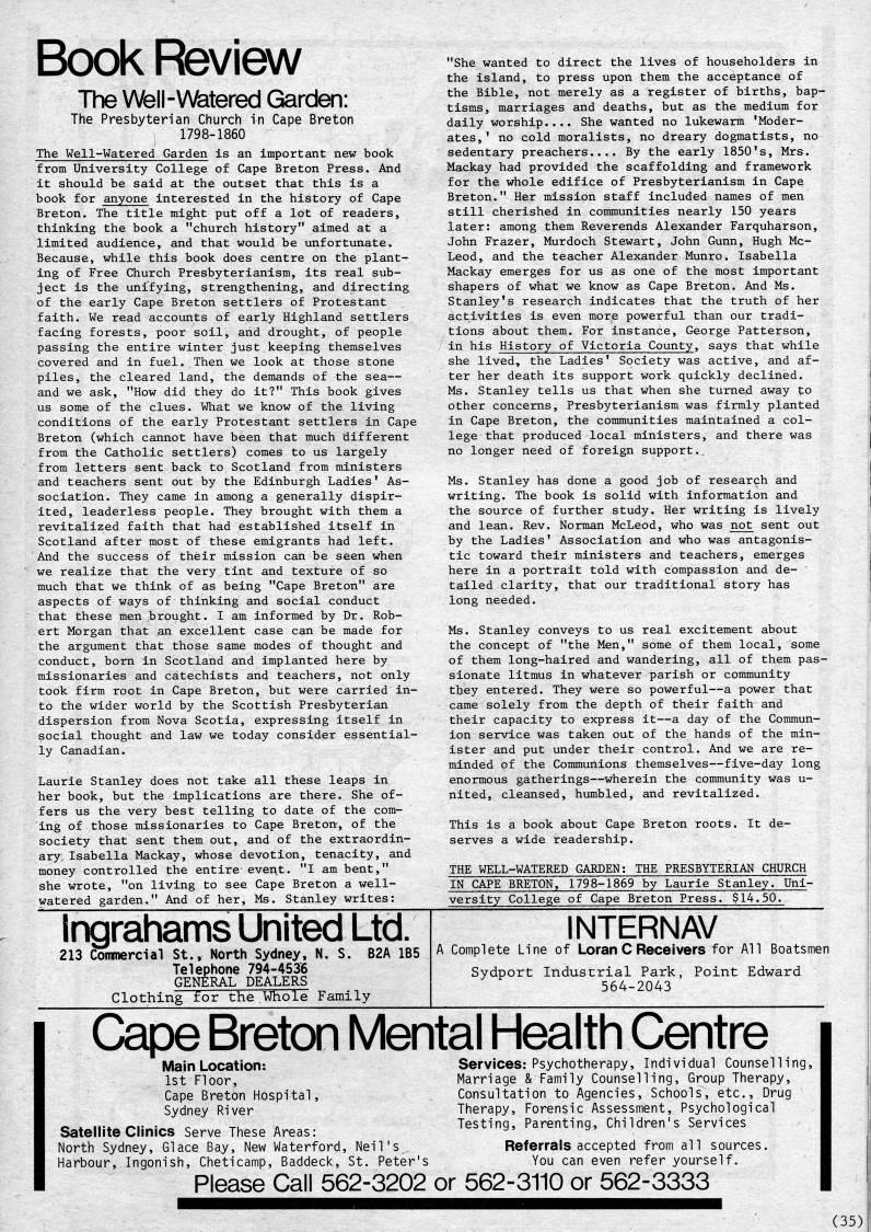 Page 35 - Book Review: The Well-Watered Garden: The Presbyterian Church in Cape Breton 1798 - 1860