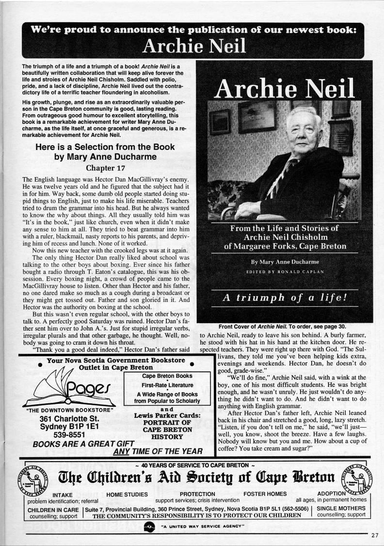 Page 27 - Advert: Archie Neil: From the Life and Stories of Archie Neil Chisholm or Margaree Forks, Cape Breton